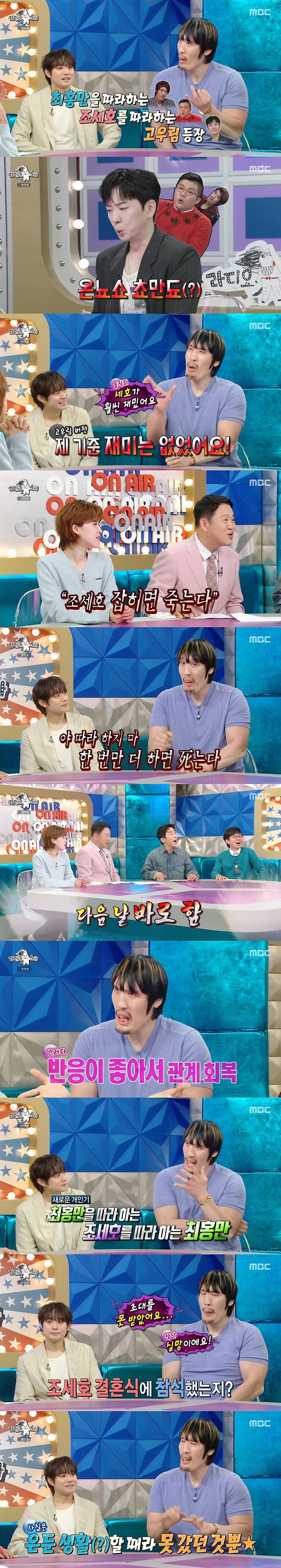 이날 최홍만은 "최근 '라스'를 봤는데 최홍만을 따라하는 조세호를 따라하는 고우림 씨가 나왔더라"고 언급했다.