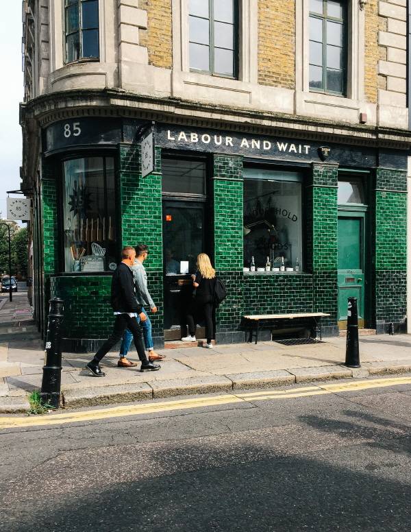 그렇게 이스트 런던을 분주하게 돌아다니다 초록빛 타일이 시선을 사로잡는 '레이버 앤 웨잇(Labour and Wait)'을 발견했다. 이스트 런던 마켓 디스트릭트 중앙부에 위치한 이곳은 일상에서 오래도록 함께할 수 있는 실용적이고 클래식한 제품을 선보이는 편집숍이다. 어찌나 고심해 선별해서 물건들을 들여놓았는지, 보는 족족 사고 싶은 것들뿐이었다. 그래도 이왕 여기까지 운명적으로 들르게 된 김에 '메이드 인 런던'을 상기시켜 줄 무언가를 갖게 되었으면 좋겠다고 생각하던 찰나, 샛노란 표지의 <East London> 책이 눈에 들어왔다.