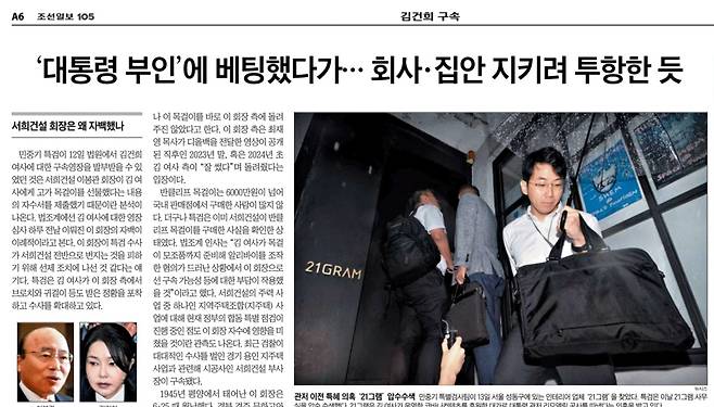 조선일보는 "박성근이 고위 공직에 기용된 배경에 김건희를 겨냥한 이봉관의 '베팅' 이 작용한 것 아닌지 특검은 의심한다"고 썼다.