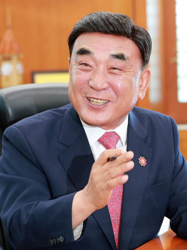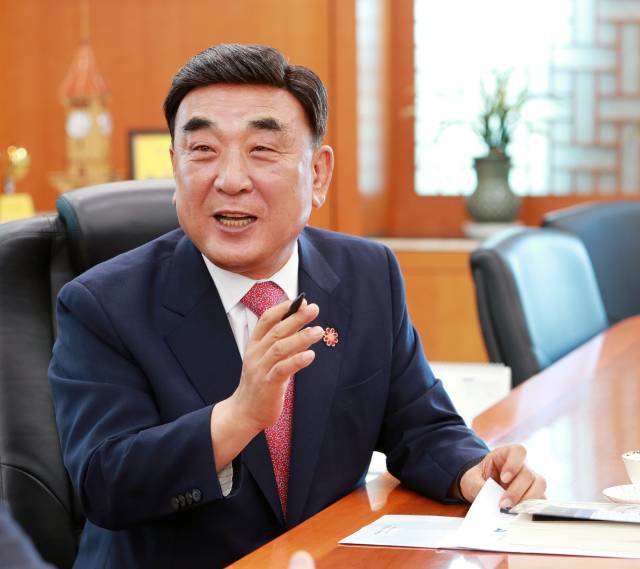 울산의 새로운 시대를 열어가고 있는 김두겸 시장은 13일 서울경제신문과의 인터뷰에서 “벌이 날아들도록 꽃밭을 조성하는 것이 최우선 목표”라고 강조했다. 그가 얘기하는 ‘꽃밭’은 사람들이 모여들고 도시가 성장하는데 필수적인 공간, 인재, 정책 등의 기반을 일컫는다. 지난 6월 민선 8기 3주년 인터뷰에서도 언급할 만큼 기반 조성이 중요하다는 게 김 시장의 생각이다.