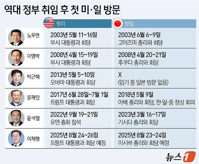 (서울=뉴스1) 윤주희 디자이너 = 이재명 대통령이 오는 25일(현지시간) 미국 워싱턴DC에서 도널드 트럼프 대통령과 한미정상회담을 개최한다. 취임 82일만에 미 정상과 첫 대면이다. 또한 방미 일정에 앞서 오는 23일 일본을 방문해 이시바 시게루 일본 총리와 한일정상회담을 갖는다.