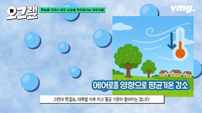 NASA에서 분석해 보니 이 화산 폭발로 약 1,500만 톤의 이산화황이 성층권에 분출되었는데, 엄청난 양의 이산화황이 대기 중의 물과 반응하면서 황산 입자로 구성된 에어로졸 입자층을 형성하게 됩니다. 그런데 웬걸요, 대폭발 이후 지구 평균 기온이 떨어지는 겁니다. 알고 보니 분화로 만들어진 에어로졸 층이 태양빛을 더 많이 산란시키면서 지표면에 닿는 빛을 줄여준 거죠.