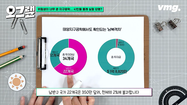 또 하나 많은 사람들이 지적하고 있는 건, 태양지구공학 연구 자금의 대부분이 북반구 국가들에게로 간다는 겁니다.
