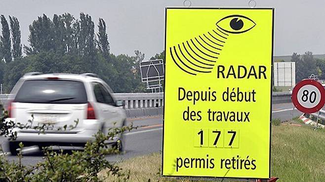▲ 스위스 로잔과 이베르동을 있는 고속도로에서 과속으로 운전면허가 취소된 차량의 수를 표시하는 전광판이 세워져 있는 모습