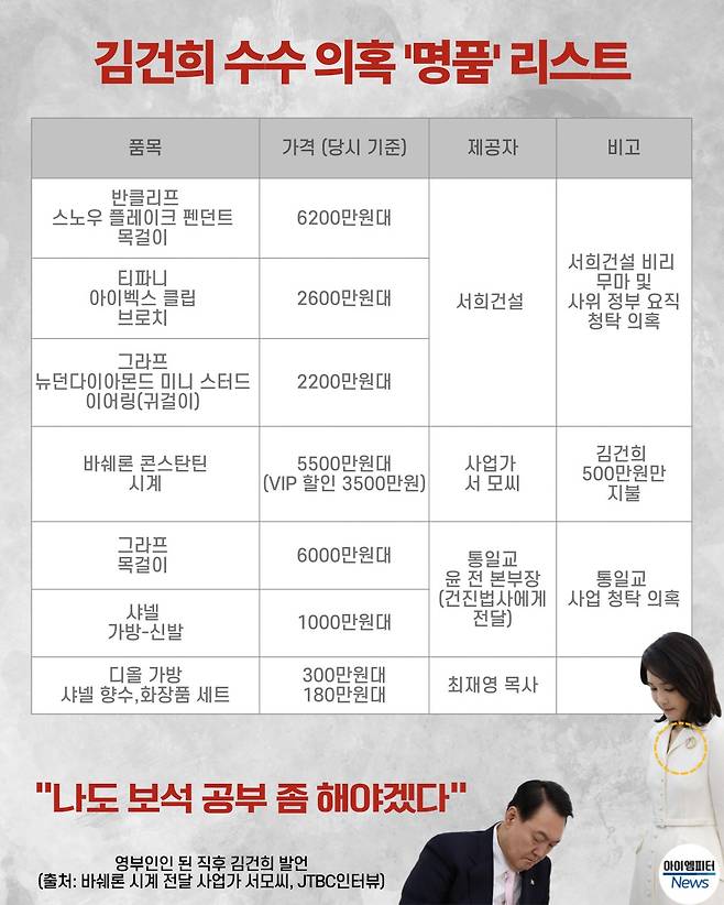 | ▲ 김건희씨 수수 의혹 염품 리스트 |