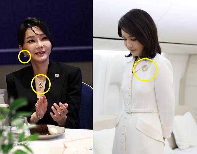 | ▲ 김건희씨가 나토 해외 순방 때 착용했던 목걸이와 브로치, 귀걸이 |