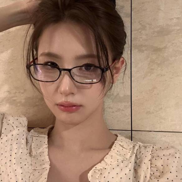 90년대생이라면 모두가 공감할 것이다. 학급에 안경 쓴 모든 친구가 알이 작은 사각뿔테 안경을 쓰고 다녔다는 것을! 약 10여 년의 세월이 흘러 다시는 돌아오지 않을 것 같았던 트렌드가 돌아왔다. 빨간 뿔테를 쓴 ‘안경만두’ 캐릭터와 함께. 2000년대 초반의 향수를 불러일으키는 빨간색 안경을 착용한 만두 캐릭터는 MZ 세대의 픽을 받으며 요즘 가장 핫한 캐릭터로 자리매김했다. 마치 안경만두 캐릭터처럼 사각 뿔테 안경 또한 트렌디한 아이템으로 떠올랐다. 미연은 Y2K 감성을 한껏 살려 그때 그 시절을 떠올리게 하는 작은 도트 패턴 톱으로 스타일링을 완성했다.