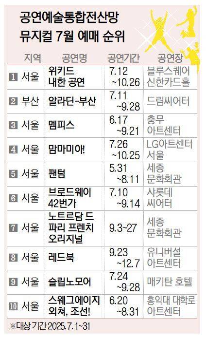 실제 ‘알라딘’은 공연예술통합전산망 KOPIS 기준 2025년 상반기 뮤지컬 흥행 1위를 서울 공연이 차지했으며, 부산 공연은 현재 티켓 예매율 상위 10위권 내 유일한 지역 공연으로 매겨졌다.