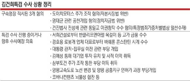 김 여사는 구속 후 모든 수사·재판에 불출석하고 있는 윤 전 대통령과 달리 특검 소환에 응했지만 구속영장에 적시된 기존 혐의에 대해서는 부인, 서희건설 금품수수 의혹 등 나머지 혐의에 대해서는 진술을 대부분 거부한 것으로 알려졌다.