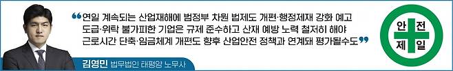 #시사점 무엇보다 산업재해와 인명피해 근절을 위해 노사정 가릴 것 없이 최선의 노력을 다해야 할 것이다. 기업의 입장에서도 재해로 인한 직접적인 피해 뿐만 아니라, 기업 주가의 급락이나 평판 하락, 경영 전반에 미치는 영향을 충분히 고려하여 적극적인 재해 예방 활동과 필요한 투자를 아까지 말아야 할 것이다.