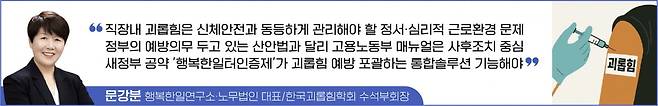 산업안전보건법 제4조 제1항 제3호는 정부가 직장 내 괴롭힘 예방을 위한 지침 마련, 지도, 지원을 의무적으로 이행해야 함을 명시하고 있다. 그러나 지금까지 고용노동부가 배포한 매뉴얼(2023.4)은 사후조치 중심이며, 예방에 관한 구체적 지침이나 지원은 미흡하다. 새 정부가 5인 미만 사업장, 특수고용, 플랫폼 노동자까지 법 적용 범위를 확대하겠다고 밝힌 만큼, 정부는 법이 부여한 책무를 실질적으로 이행해야 한다.