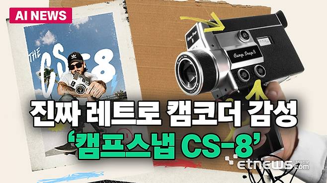 제조사 '캠프 스냅(Camp Snap)'이 공개한 CS-8은 1960~70년대 슈퍼 8 필름 카메라에서 영감을 받은 디지털 비디오 카메라다.