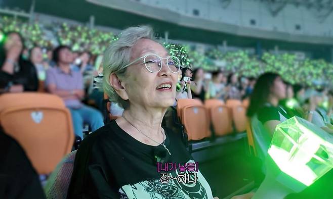 주헌 담당자로부터 신형 응원봉을 받고 공연장에 입장한 김영옥은 "장관이다 장관이야. 이렇게 팬이 많구나. 다 젊은 애들이다"라며 놀라움을 감추지 못했다.