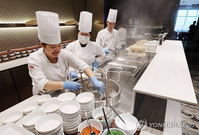 대한항공 인천공항 신규라운지에서 음식 조리하는 셰프들