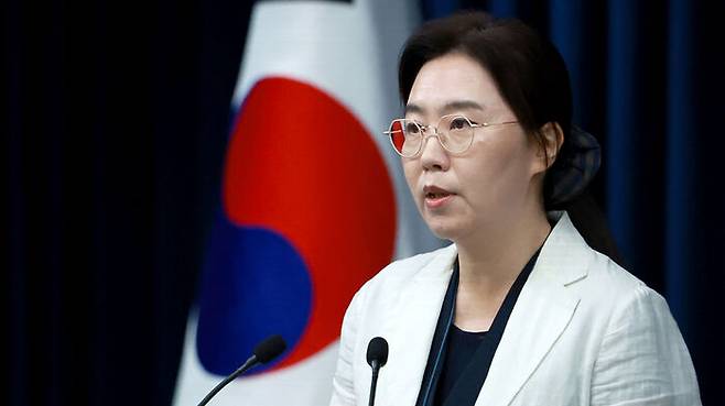 ▲ 강유정 대통령실 대변인이 14일 서울 용산 대통령실 청사에서 현안 브리핑을 하고 있다.