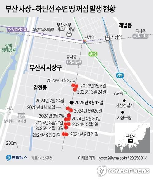 [그래픽] 부산 사상~하단선 주변 땅 꺼짐 발생 현황