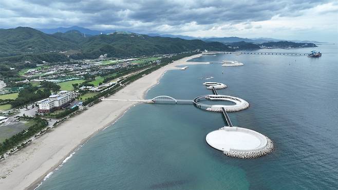 | ▲ 바다에서 바라본 친수공간 연안침식방지와 관광객 유치를 위해 조성된 친수공간 |