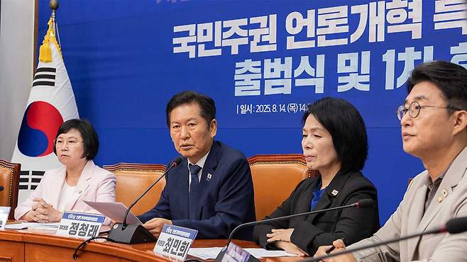 민주당 정청래 대표는 국회에서 열린 '국민주권 언론개혁 특별위원회' 출범식에서 "언론 개혁 역시 폭풍처럼 몰아쳐서 전광석화처럼 추석 전 완수를 목표로 해 달라"고 말했습니다.