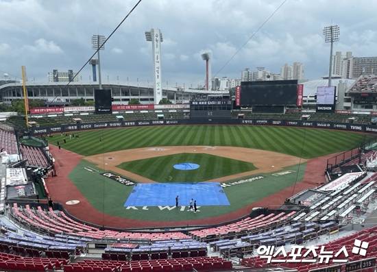 그럼에도 폭우로 인해 마운드와 홈 베이스 주변엔 여전히 방수포가 덮여있었고, 내야 곳곳엔 큰 물웅덩이가 고였다.