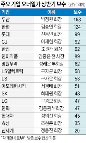 오너 경영인 중에선 상반기에 163억1000만원을 받은 박정원 두산그룹 회장이 보수가 가장 많았다.