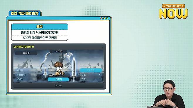 김창섭 넥슨 메이플스토리 디렉터는 14일 메이플스토리 공식 소통 방송 '메이플 나우'를 진행했다.