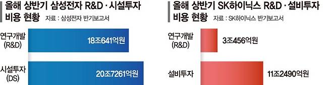 삼성전자와 SK하이닉스의 올해 연구개발(R&D) 투자비용이 상반기 기준 나란히 '역대 최대'를 기록한 것으로 나타났다.