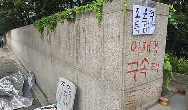 담벼락에는 "조은석 특검 해체" 등의 문구가 적힌 종이도 붙었습니다.