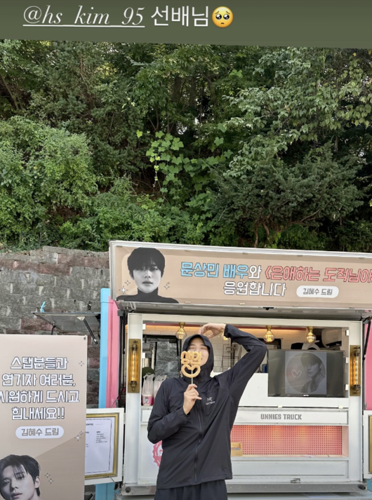 문상민, 김혜수에 든든한 응원받았다..커피차 선물에 하트로 보답