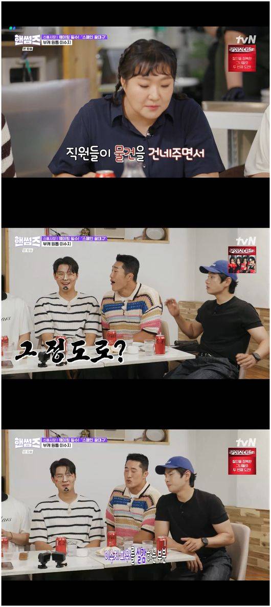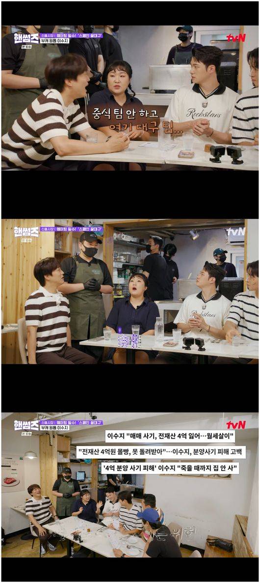 해방촌 신흥시장을 새롭게 컬래버해서 만든 핫한 골목길은 딱 봐도 운치가 있었다. 그곳에 위치한 스페인식 꿀대구 가게는 음식이 나오기도 전에 군침을 삼키게 했다. 라구 파스타부터 등장하자 모두 감탄을 금치 못했다. 이수지는 "제가 돈 내면 저도 먹을 수 있는 거냐"라고 물었고, 신승호는 "다 돈 내면 가능하시다"라고 말했다. 이에 김동현은 "투자 어떠냐"라고 권유했는데, 이수지는 "나에게 투자 권유한 사람도 이 말투였다. 두 번 다시 안 한다"라면서 4억 전세 사기를 떠올린 듯 질색했다.