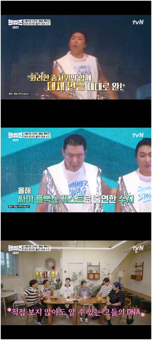 또 이수지는 “싸이가 개인 번호로 먼저 연락 왔었다. 그런데 육아 중이어서 처음 전화를 못 받았다. 싸이랑 전화할 때 ‘아들이냐’라고 물어서 ‘아들이다’라고 했더니 자길 닮았겠구나 했다”라며 흠뻑쇼 출연 비하인드를 전해 웃음을 안겼다.