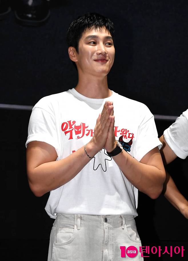 배우 안보현이 15일 서울 강남구 메가박스 코엑스에서 열린 영화 <악마가 이사왔다> 무대인사에 참석하고 있다. 악마가>