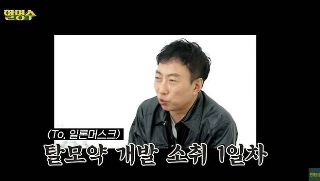 박명수는 매일 머리카락 세냐는 질문에 "세면대에 머리카락이 떨어지는 걸 보면 마음이 아프다. 못 본 척하면서 손으로 치운다"라고 털어놓았다. 이어 박명수는 "일론 머스크란 분이 이해가 안 간다. 뭣 하려고 화성에 자꾸 사람을 보내냐. 있는 머리나 안 빠지게 해주지. 로봇 만들지 말고, 머리 안 빠지는 약을 좀 만들었으면 좋겠다"라고 바라는 점을 전했다.
