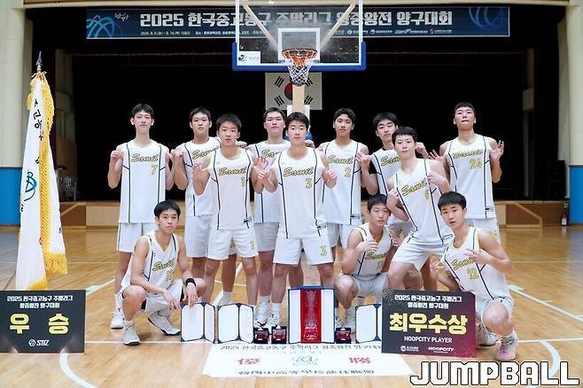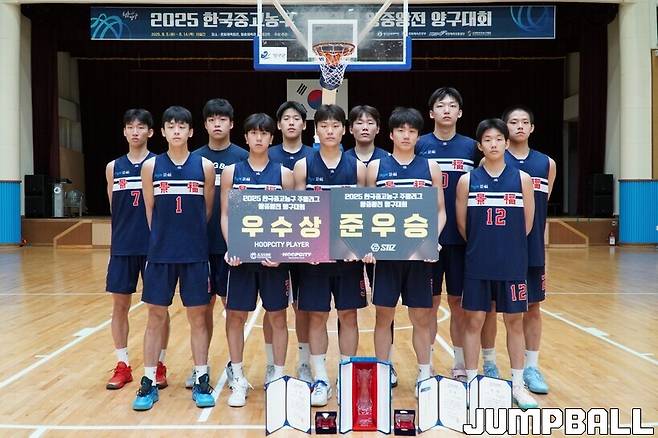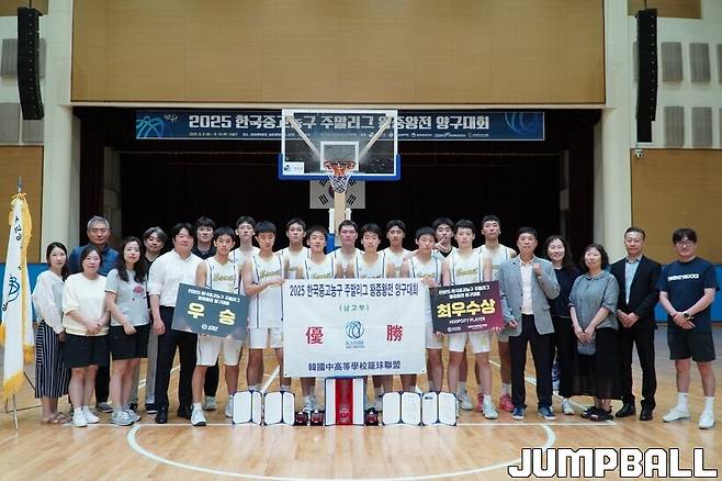 [점프볼=양구/배승열 기자] 한국중고농구연맹(회장 박소흠)이 주최, 주관한 '2025 한국중고농구 주말리그 왕중왕전 양구대회' 고등부 일정이 14일 강원특별자치도 양구군 문화체육회관에서 마무리됐다.