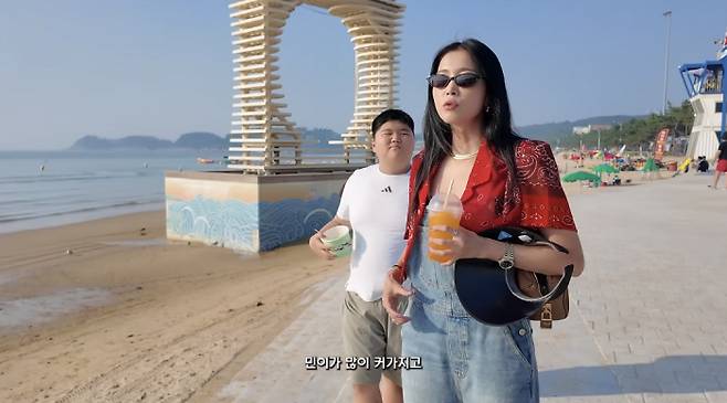 오윤아는 민이와 충남 태안 만리포 해수욕장 근처 놀이공원에서 바이킹을 타며 즐거운 시간을 보냈다.