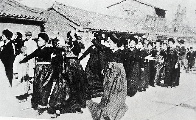 | ▲ 3·1 독립만세 시위에 참여한 조선 기생들 |