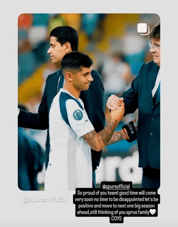 토트넘의 '영원한 캡틴' 손흥민도 비록 몸을 멀어졌지만, 이들의 아픔을 함께 공유했다. 그는 SNS를 통해 "정말 자랑스러운 팀이다! 좋은 시간이 올 것이다. 곧 실망할 필요 없다. 긍정적이고 다음 시즌을 향해 나아가자. 여전히 스퍼스 가족을 생각하고 있다"며 토트넘에 지지를 보냈다.