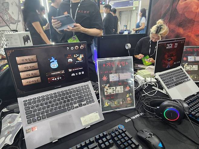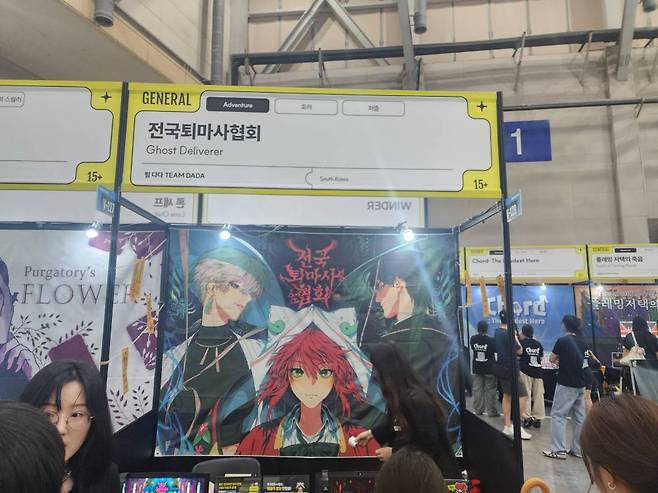 인플루언서들이 ‘합방(합동 방송)’ 소재로 사용하던 멀티플레이 소셜 디덕션 게임 ‘귀귀살전’의 부스도 있었다. 귀귀살전은 한국 전통 지옥과 귀신·요괴를 배경으로, 4~10명의 이용자가 서로의 목표를 추리해 제거하는 ‘꼬리잡기’ 방식이 핵심이다.