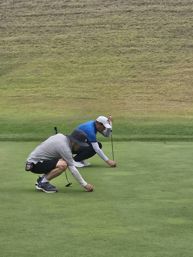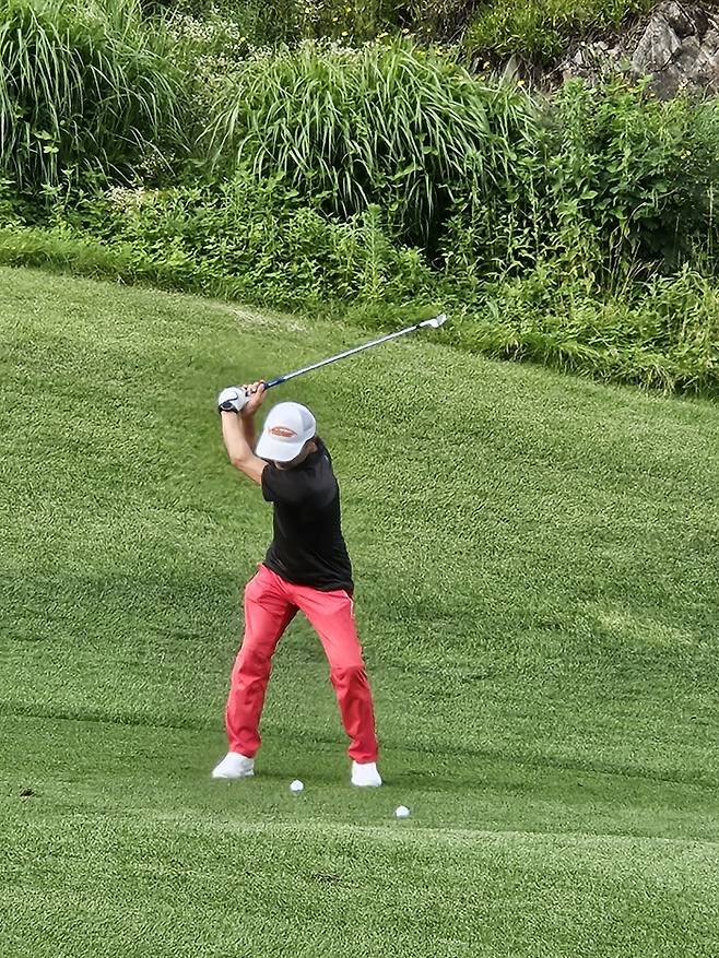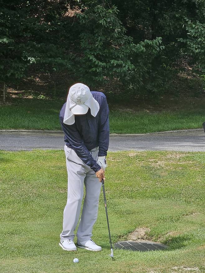 덥다고 말하기에 같은 조건 아니냐며 동반자들이 내몰았다. 모자 쓰고 스윙 하면 집중력이 떨어진다는 부연 설명에도 설득력이 없었다.