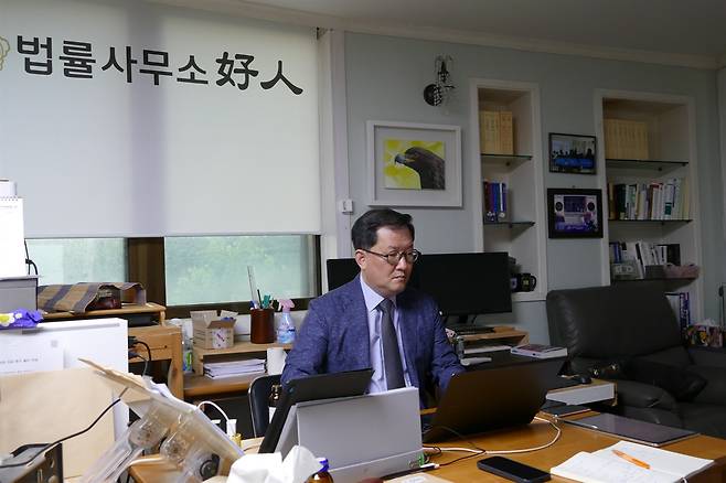 사무실 한쪽 책상에 앉은 그는 1만1천 명의 소송 자료를 엑셀에 입력하느라 분주했다. 개인정보를 다루는 작업이어서 혹시 모를 절차 문제를 막기 위해 누구에게도 맡기지 않고, 직접 컴퓨터를 더듬으며 자료를 정리하고 있었다. 김 변호사는 평소 한 주에 두세 건의 재판을 소화해야 할 만큼 바빴다. 그런데도 윤석열씨를 상대로 한 집단 손해배상 소송을 직접 진행하는 것이다. 그 이유를 묻자 그는 눈을 질끈 감았다가 뜨며 짧게 말했다.