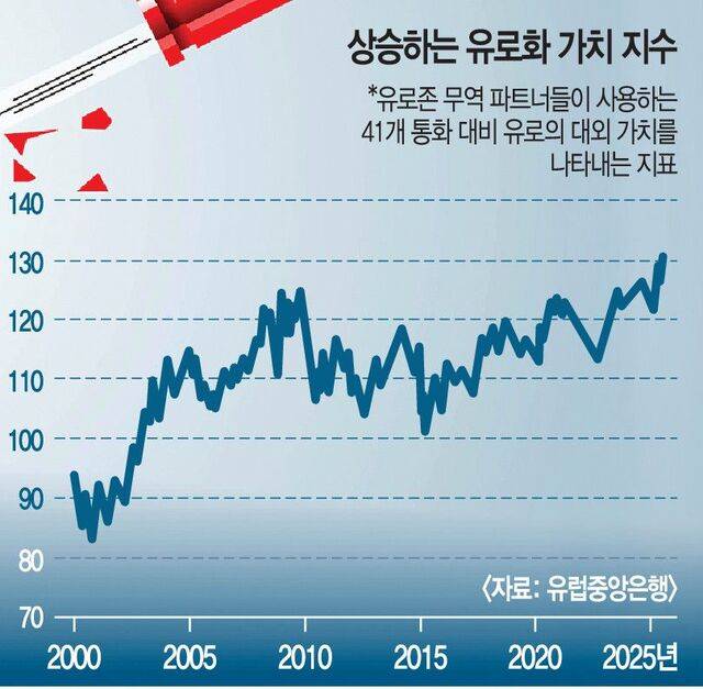 라가르드 총재는 “지금이야말로 유로화의 세계적 영향력을 확대하고 위력을 행사할 최고의 기회”라고 주장했다. 그 근거로 세계 경제를 지탱하는 중국 일본 한국 영국 캐나다 등 주요국 화폐들의 유로화 교환 비율이 빠르게 상승하는 반면 달러화는 급락하고 있음을 내세웠다.