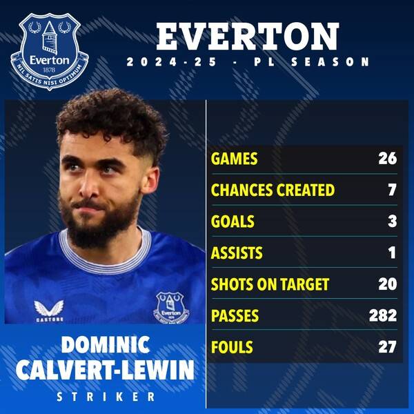 칼버트-르윈은 잉글랜드 국적의 1997년생 젊은 스트라이커로, 189cm에 달하는 큰 키를 갖춰 포스트 플레이에 강점을 보인다. 다만 잦은 부상이 단점으로 지목되며, 그로 인해 경기력의 편차가 큰 편이다.