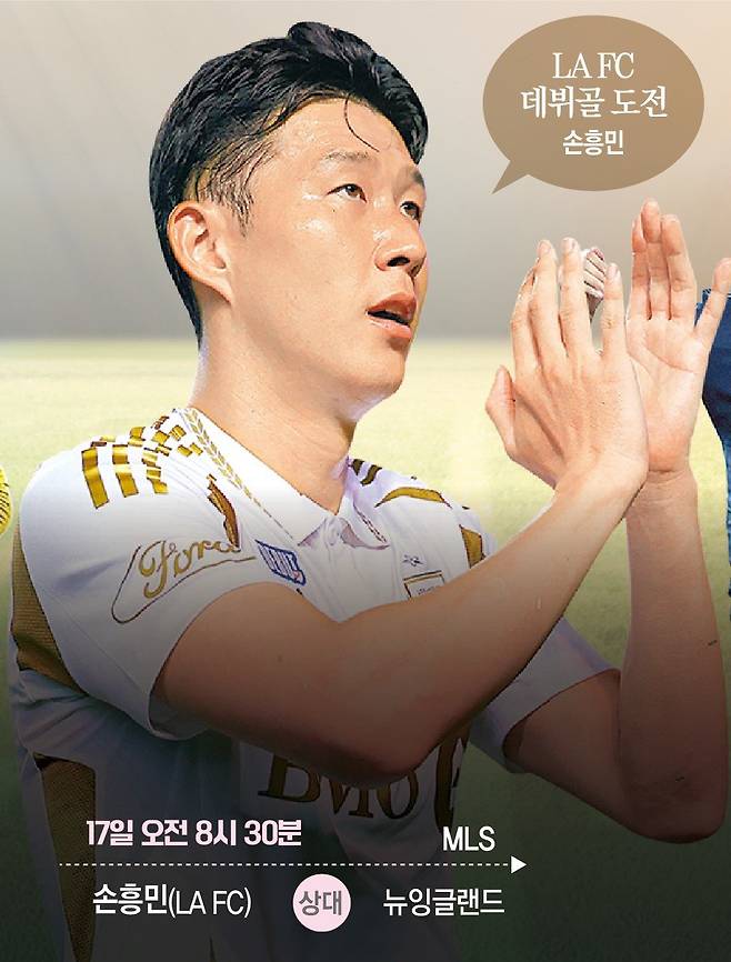 10일 시카고와의 방문경기에서 입단 사흘 만에 데뷔전을 치른 손흥민은 17일 뉴잉글랜드와의 MLS 방문경기에서 데뷔골 사냥에 나선다. 15일 현재 LA FC는 서부 콘퍼런스 5위에, 뉴잉글랜드는 동부 콘퍼런스 11위에 자리해 있다.