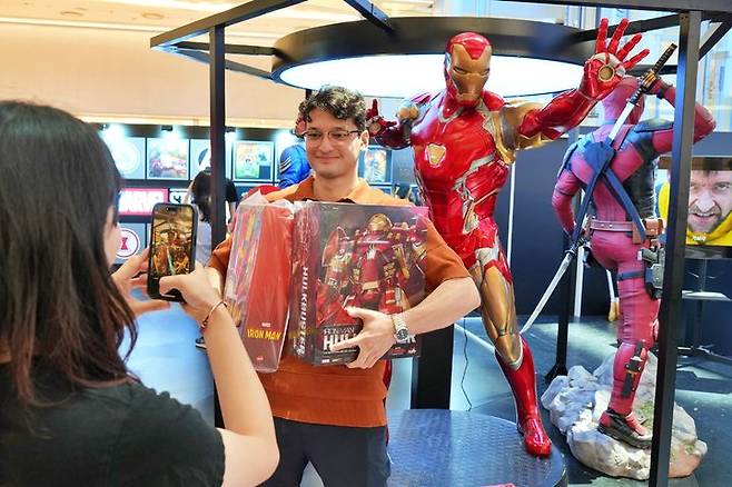 대형 아이언맨 슈트 포토존에서는 기념 사진을 촬영할 수 있으며, SNS에 올리면 추첨을 통해 아이언맨 헐크 버스터와 마블 비밀 서랍 피규어 스파이더맨, 베놈 등의 경품을 제공한다.