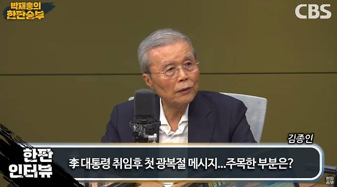 ◆ 김종인> 나는 이재명 대통령이 오늘 경축사에서 얘기하는 대북 문제나 대일 관계나 하는 것은 현실에 기초해서 그렇게 얘기할 수밖에 없지 않느냐 이렇게 생각합니다. 그동안 남북관계라고 하는 것은 항상 통일을 전제로 해서 얘기했는데 그거는 현실적으로 지금 가능하지 않은 그런 얘기가 되고 지금 대한민국과 북한이라는 나라가 벌써 UN에 동시 가입된 지가 35년이 됐어요. 그러면 국제사회에서 이 한반도에는 두 나라가 존재한다는 것이 그냥 거의 기정사실화되고 있는 과정인데 우리가 일방적으로 계속 통일만 얘기한다고 그래서 그거는 실현이 불가능하다는 것을 이미 입증돼 있는 상황이라고요. 그러나 우리가 특수하게 같은 민족이 두 나라를 갖다 형성하고 있지만 절대로 어떤 전쟁이나 이러한 것을 다시는 일어나서는 안 된다고 하는 것을 전제로 했을 적에 상호 서로 대화를 하고 평화를 갖다가 유지할 수 있는 방안을 갖다가 찾는 것이 가장 현실적이 아니겠나 생각해요. 제가 보기에 그렇다고 해서 우리가 통일을 포기하자는 것이 아니라 어느 날 역사적인 순간이 도래돼서 갑자기 통일의 기회가 올 수도 있어요. 그러면 그런 날이 올 때까지는 우리는 현실에 적합하게 대북 관계를 갖다가 이끌어가는 것이 정상이 아니겠나 이렇게 봐요. 그 점에 있어서는 오늘 이재명 대통령께서 얘기하는 것이 난 맞다고 생각하고 대일 관계라고 하는 것은 지금 우리가 그동안에는 일본을 적대시하고 일본은 또 한국을 과거에 자기의 식민지라고 해서 상당히 무시하는 경향이 있었는데 지금은 여러 가지 여건이 정관이 변경이 돼서 경제적으로나 문화적으로나 모든 것을 봤을 적에 일본이 우리보다 월등하다고 하는 생각도 할 수 없고 우리가 또 그걸 그대로 인정도 안 하고 있는 그런 실정이기 때문에 양국이 과거에 집착하지 말고 미래지향적으로 양국의 서로 발전을 위해서 서로 협조해 나가자 하는 것은 나는 올바른 방향으로 택했다고 봅니다.