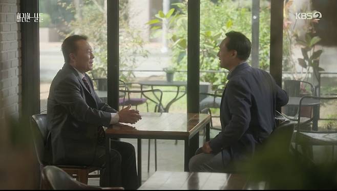| ▲ KBS2 주말 드라마 '화려한 날들' 속 장면 평소 알고 지내던 김사장을 만나 취업을 부탁하는 이상철 부장 |