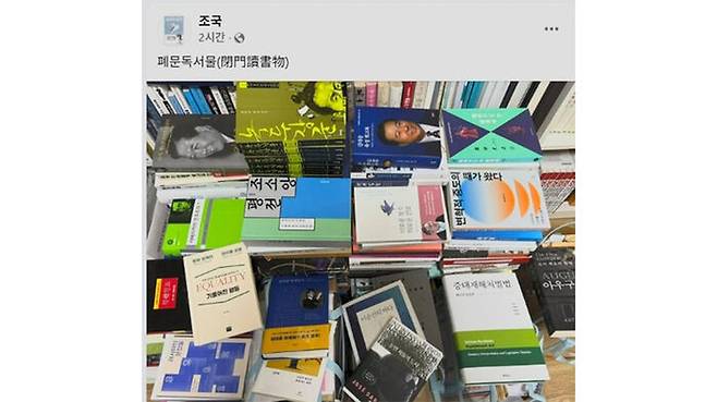 출소 이틀째인 오늘(16일) 조 전 대표는 "폐문독서물(閉門讀書物)"이라는 글과 함께 책 사진을 게시했습니다.