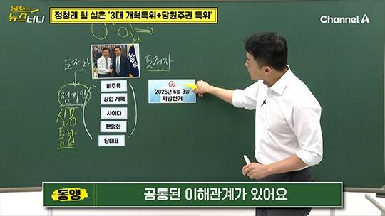 이 3가지 개혁 특위에서 어떤 내용의 개혁안을 진행할 지는 내일 <뉴스터디>에서 설명을 드릴 텐데요. 위원장 맡은 민형배‧최민희‧백혜련 의원은 물론 이재명 대통령과 가깝기도 하지만 정 대표 본인과 가까운 사람들로 딱 구성을 해 놓은 것 같습니다.