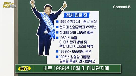 정 대표는 1965년생으로 이 대통령보다 1살 어립니다. 충남 금천에서 태어났고, 건국대 산업공학과에 입학해 운동권에 투신하죠. 당시 전대협 산하 서총련에서 활동을 했는데요. 이 사건으로 유명해졌습니다. 지금도 입방아에 오르고 있는 1989년 10월 주한 미 대사관저 점거 사건이죠. 사과탄 투척 및 방화 미수 사건을 주도한 혐의를 받았는데요. 1989년 10월 13일 당시 동아일보 기사를 보면, 대학생 6명이 ‘반미 구국 결사대’를 조직해서 미 대사관저에 난입 했고, 담 넘어가서 사과탄을 터뜨렸다고 돼 있습니다. 정청래 대표 등 6명은 당시 노태우 정부와 그레그 주한 미 대사를 비판하고, 시장 개방 요구하지 말라고 외치면서 50분 동안 농성을 벌였고, 모두 연행됐는데요. 폭탄이 터지지 않았고 방화도 미수에 그쳤는데, 이 건으로 정청래 대표는 징역 2년을 선고받고 복역했습니다.