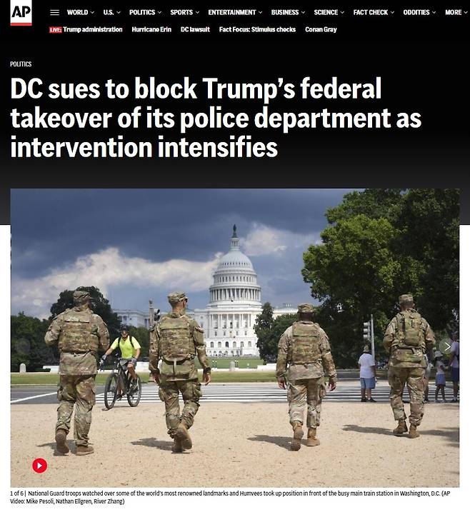 | ▲ 미국 연방 정부의 워싱턴DC 경찰 통제에 대한 소송을 보도하는 AP통신 |