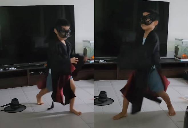 제우 군은 의상도 놓칠 수 없었다. 내복 위에 도포를 착용, 여기에 갓, 가면까지 준비한 채 진진하게 댄스를 선보이고 있는 제우 군의 모습이 귀여움 가득하다.